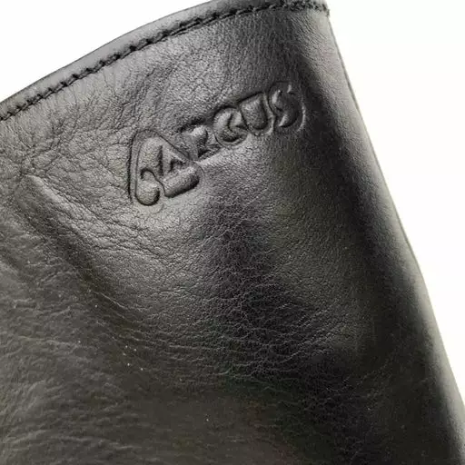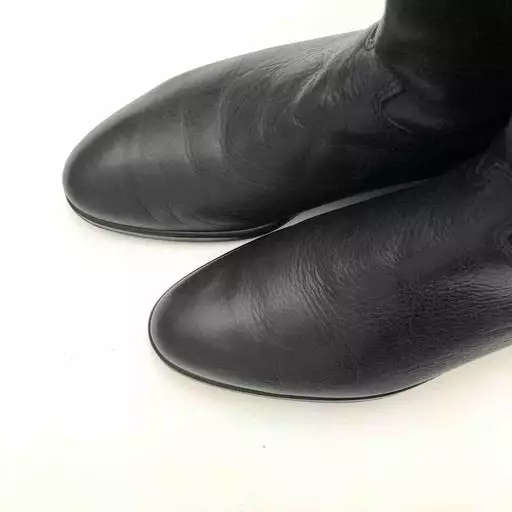 Bottes cavalières Arcus 90s. Cuir doublé noir, talon 2 cm, tige 34 cm.