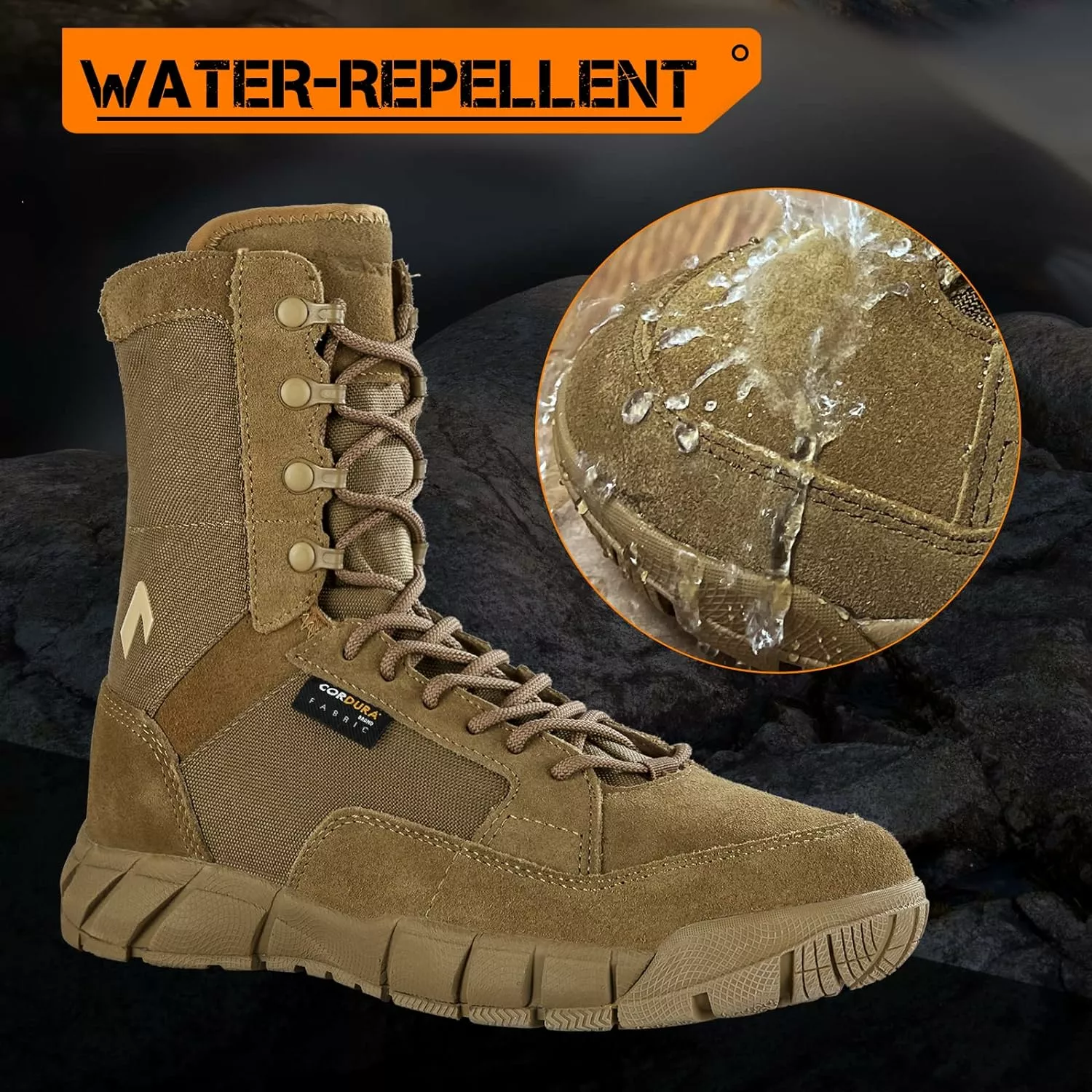 - DURABLE:Inside avec tissu de lycra flexible, confortable et résistant à l’usure. Bouchon en cuir d’orteil. La langue de la botte de cheville empêche les cailloux, le sable, la saleté et autres débris de pénétrer dans vos chaussures tactiques. Les bottes sont faites de caoutchouc protecteur et résistant à l’usure de haute qualité, et sont faites de cuir respirant et résistant à l’usure.