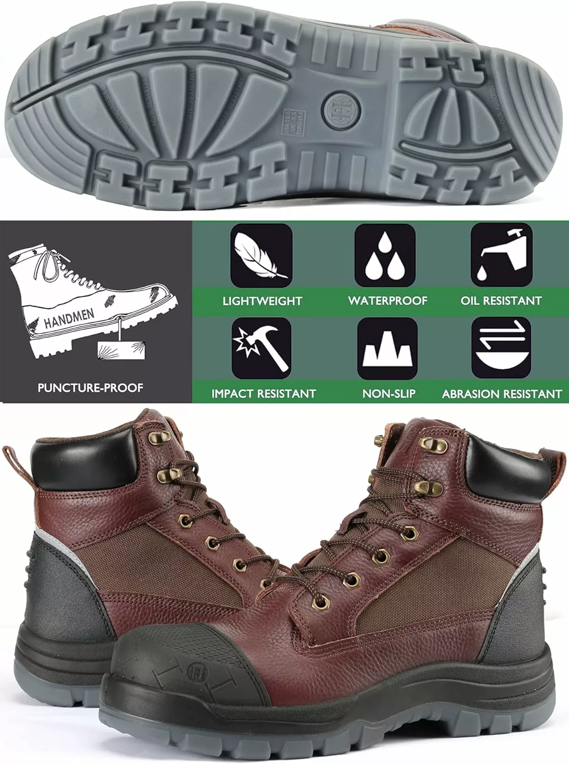 - ✅【Sturdy & Durable】Ces bottes de travail sont construites avec un processus de moulage par injection, assurant une durabilité qui résiste aux rigueurs du travail acharné. Le cuir de cheval fou est incroyablement solide, et la semelle extérieure longue tenue PU+TPU offre des performances légères, antidérapantes et durables.