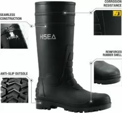 Bottes De Pluie Pour Hommes HISEA Avec Tige En Acier, Chaussures De Protection En Caoutchouc Imperméables, Bottes De Pluie En PVC Sans Couture Bottes De Travail Extérieures Sans Acier, Bottes De Pêche Au Jardin Durable Pour L’agriculture Et Le Travail Industriel