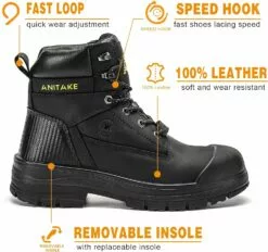 Bottes De Travail D’orteils En Acier ANITAKE Pour Hommes, 6 Pouce, Cuir Pleine Fleur, Isolation électrique, Antidérapant, Résistance Aux Chocs, Bottes De Sécurité Respirantes Et Confortables