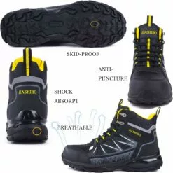 Bottes De Travail SHAMTCH Pour Hommes Bottes De Sécurité à Enfiler Résistantes Aux Toboggans étanches En Acier