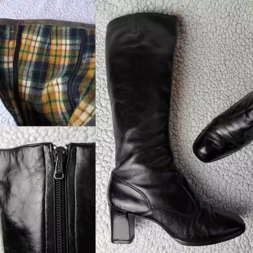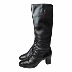 Bottes en cuir noir des années 70, de la marque Bally, fabriqué en Suisse.