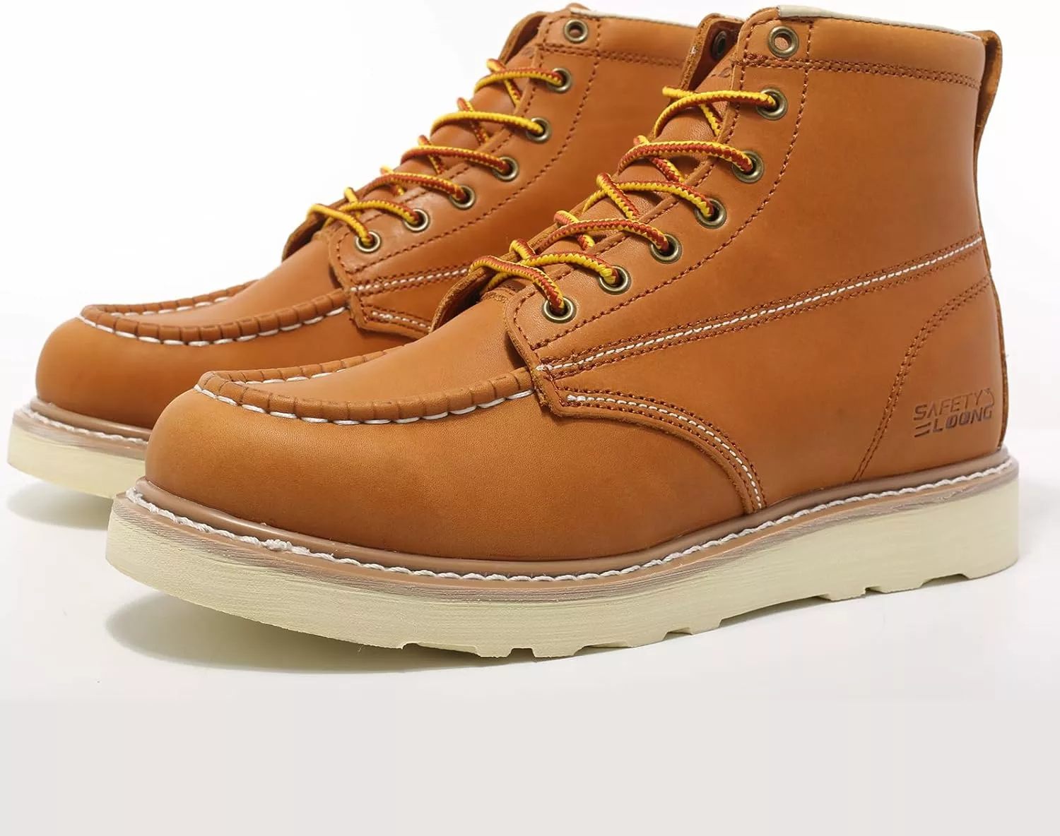 - Construction durable: Les bottes de travail pour hommes LOONG SAFETY moc toe sont réputées pour leur durabilité exceptionnelle, conçues pour résister aux conditions de travail les plus difficiles. Fabriquées avec des matériaux de haute qualité, y compris du cuir haut de gamme et des coutures robustes, ces bottes garantissent une usure durable et des performances fiables