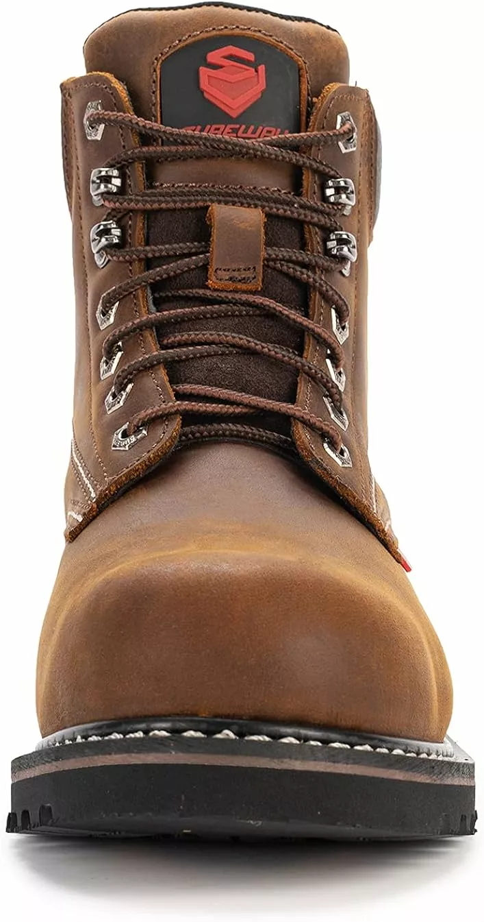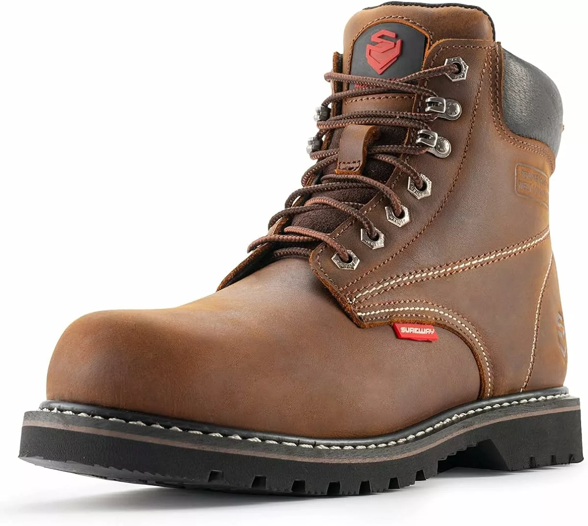 - 【Durable et Rugged】Craft pour durer avec une construction solide et traditionnelle Goodyear welt, les bottes de travail en acier SUREWAY sont robustes et durables. Tige en acier pour plus de robustesse lors de la montée d’escaliers ou d’échelles. La semelle extérieure en caoutchouc unique est résistante à l’abrasion, antidérapante et résistante à l’huile.